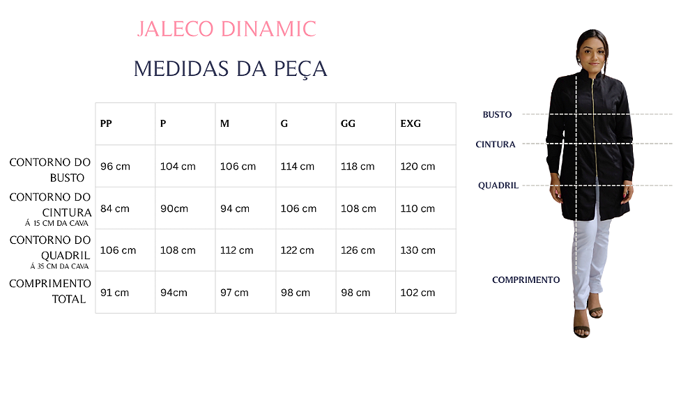 Sempre que possível, compare com um jaleco que você já possui e que tenha modelagem semelhante.